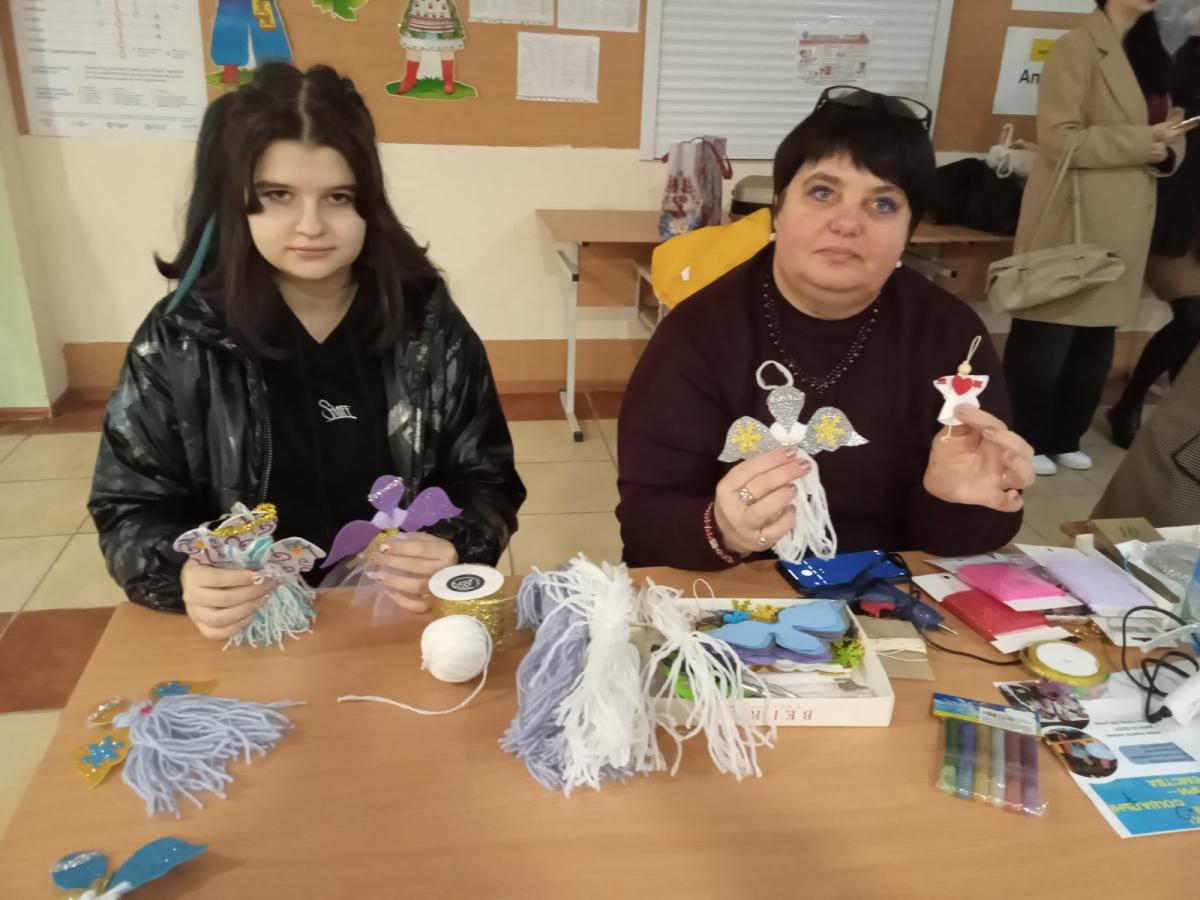 Керівниця гуртка «Моделювання іграшки-сувенір» Оксана Туз разом зі своєю вихованкою Грицаєнко Анастасією провели майстер-клас «Сувенір для героя», під час якого учасники виготовляли оберіг «Янгол-охоронець».