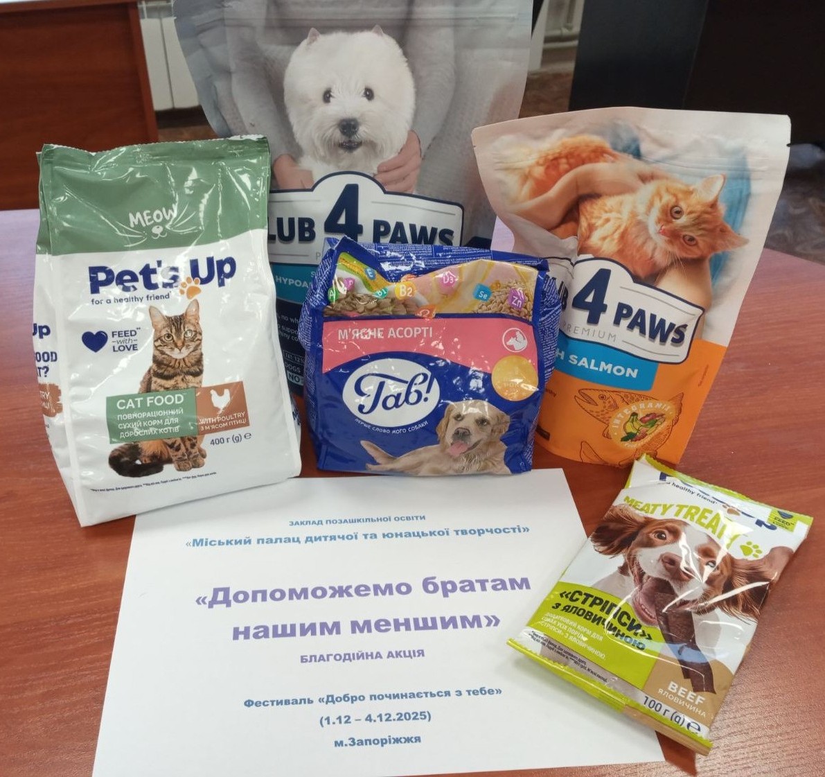 - «Допоможемо братам нашим меншим» – збір кормів для тварин, які перебувають у притулку та потребують турботи й тепла.