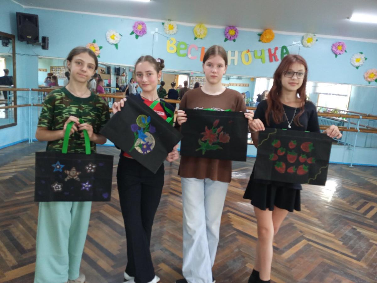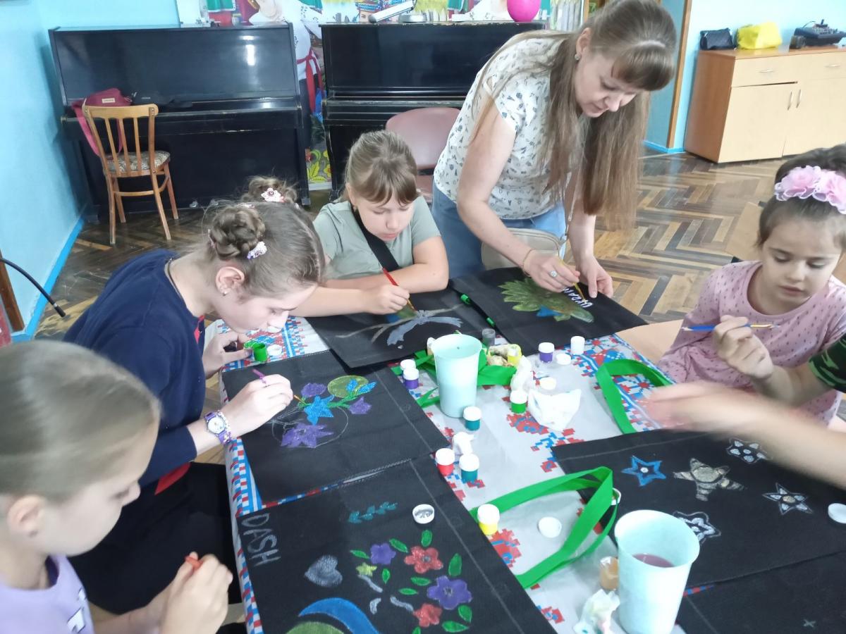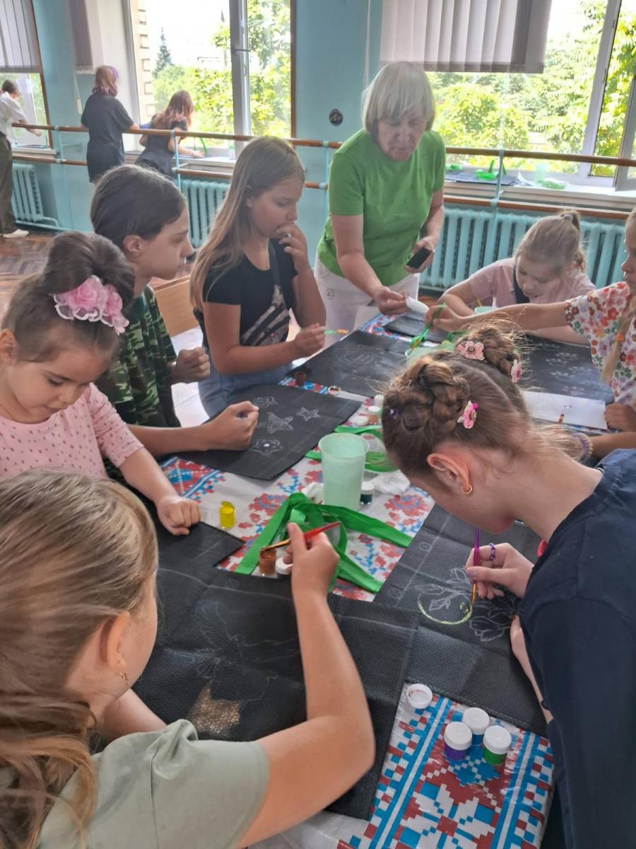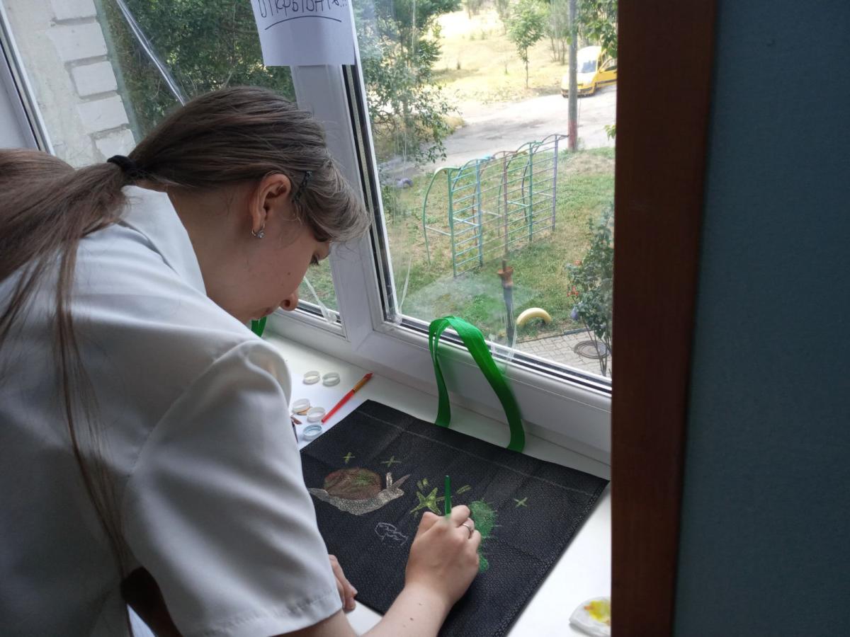 Креативною частиною заходу стало розписування еко торбинок під керівництвом педагога гуртка «Петриківський розпис» Васильєвої Оксани В’ячеславівни. Яскраві візерунки в жовто-блакитних кольорах, зображення улюблених тварин, символів літа та національних мотивів перетворили звичайні торбинки на справжні мистецькі витвори.