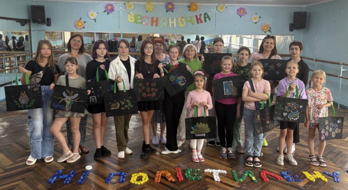 Фіналом заходу стало яскраве дефіле з еко торбинками, а пластикові кришечки учасники використали для створення девізу дня — «Ні поліетилену!»