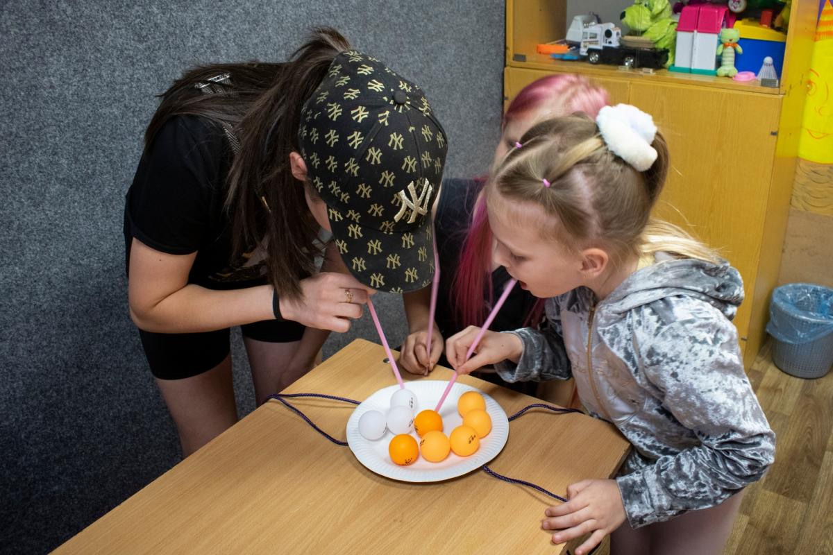 - переносили стаканчики за допомогою коктейльних трубочок;