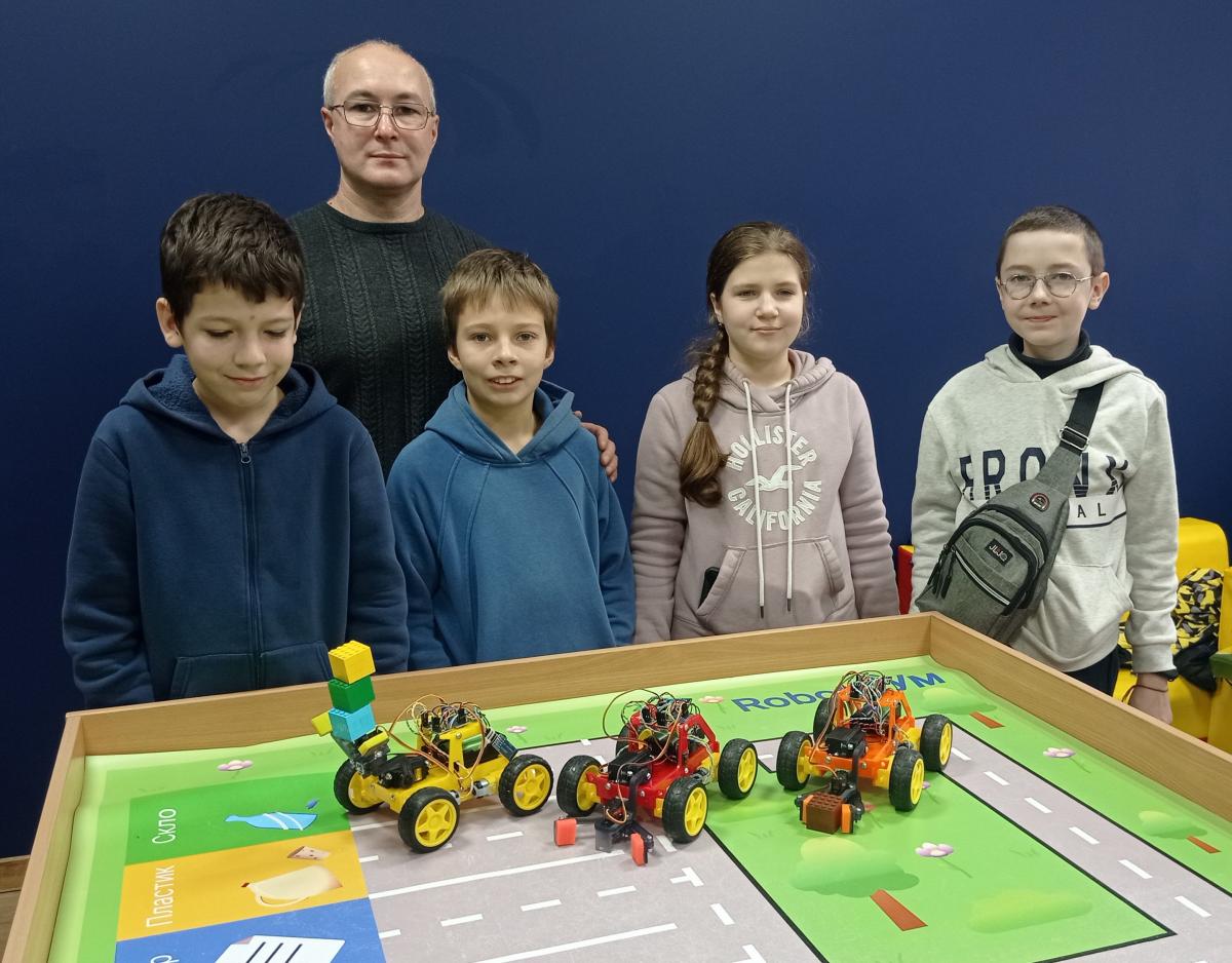 Наша змішана команда вихованців гуртків робототехніки Козацького ліцею та Міського Палацу дитячої та юнацької творчості (керівник Сергій Інденко) прийняла виклик і в надзвичайно стислі терміни спроєктувала та виготовила роботів, здатних врятувати Землю та людство від екологічної катастрофи!